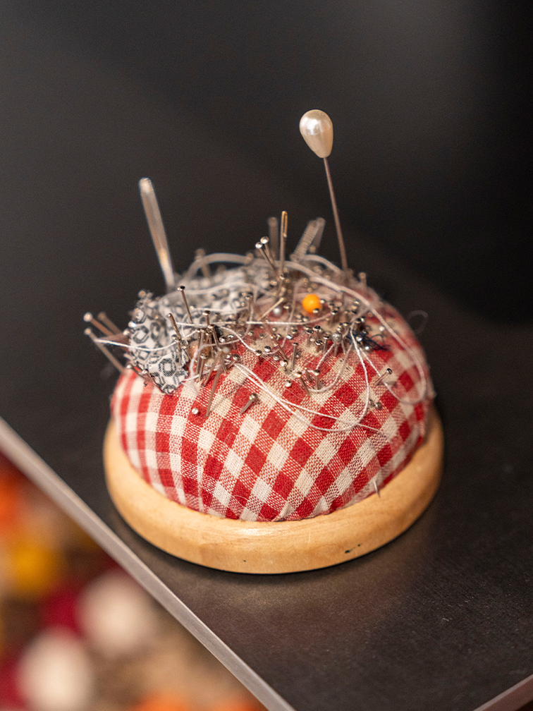 Tessuti di seta, taffetà, filati naturali come lana e cotone vengono abbinati a lavorazioni jacquard, ricami rigorosamente eseguiti a mano, creazioni all’uncinetto e patchwork, in una ricerca dei materiali più adatti che ha sempre un ruolo centrale nelle nostre realizzazioni.