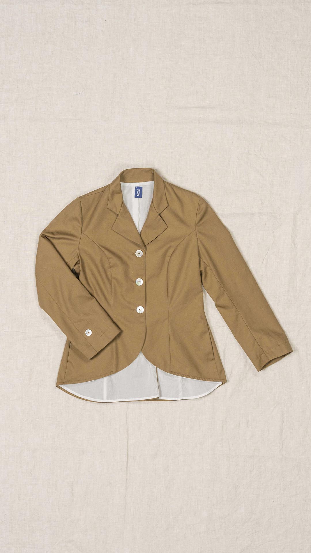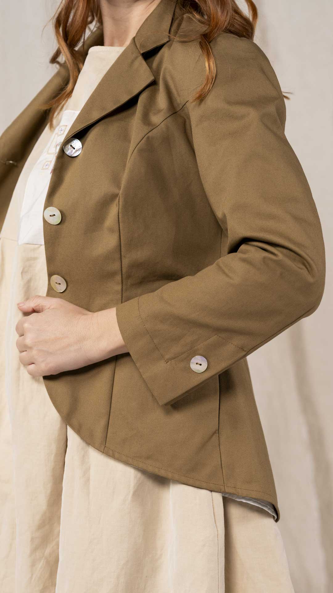 Jacket with three buttons on the front and a rounded opening that flatters the figure. Fully lined in lightweight cotton. The structured fabric maintains the shape of the garment, while the small slit at the back increases freedom of movement. An essential and versatile model that can be easily interpreted in different style combinations.