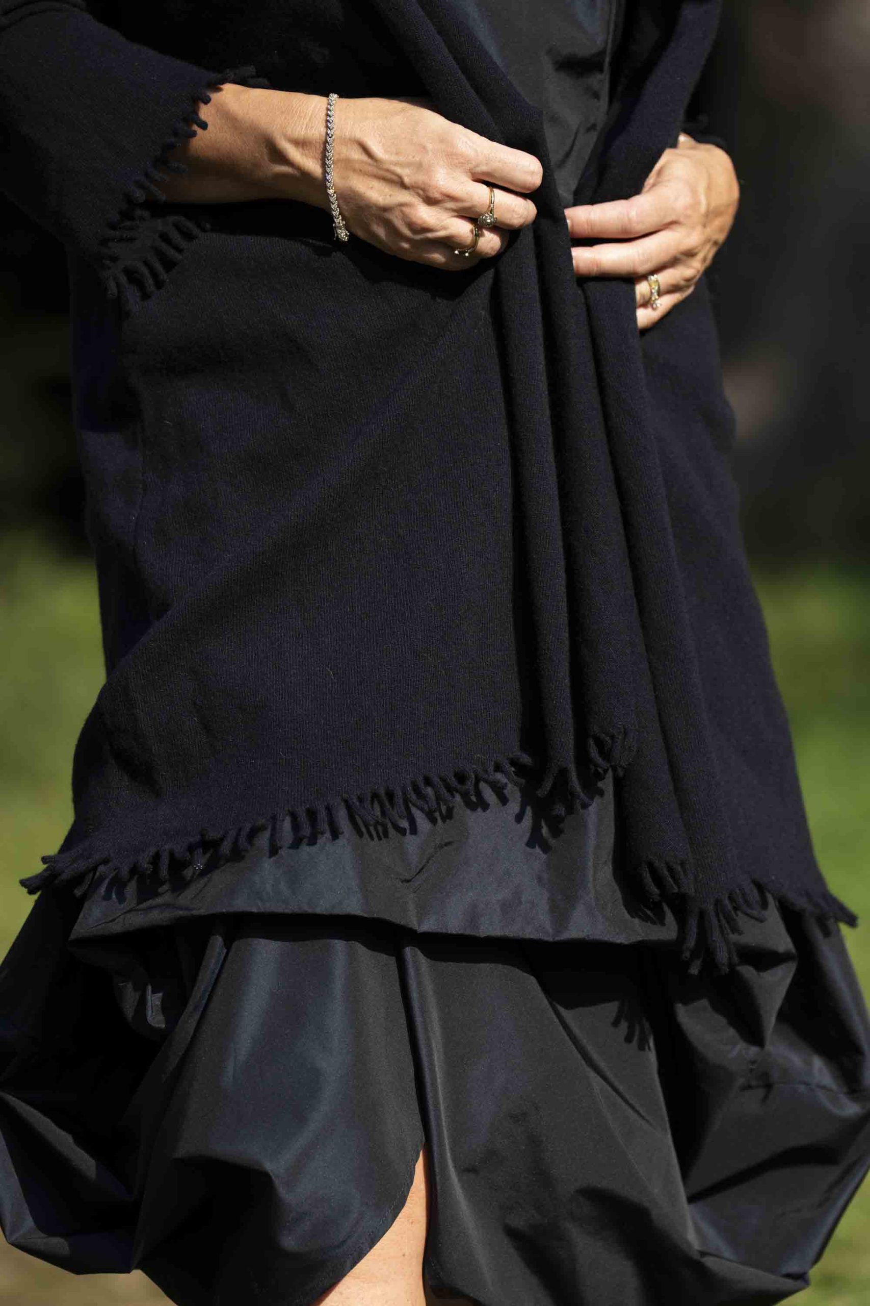 Long, regular fit shawl collar cardigan in exceptionally skin-soft Canberra wool, entirely spun and crafted in Italy. The design is enhanced and personalised with small fringes located on the cuffs and hem of the sweater. Available in various colour options.